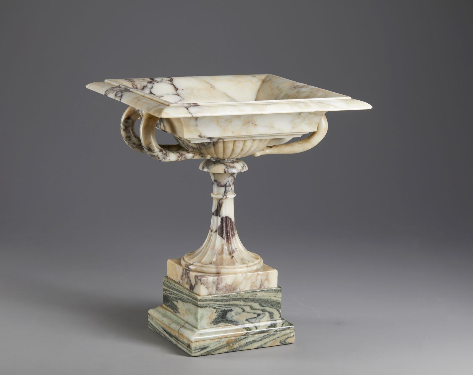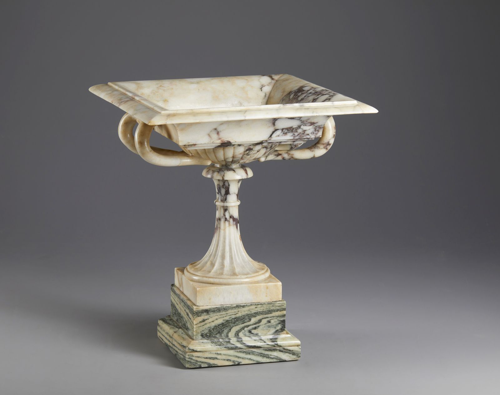 Tazza in breccia di gusto archeologico con corpo squadrato, parte inferiore baccellata [..]