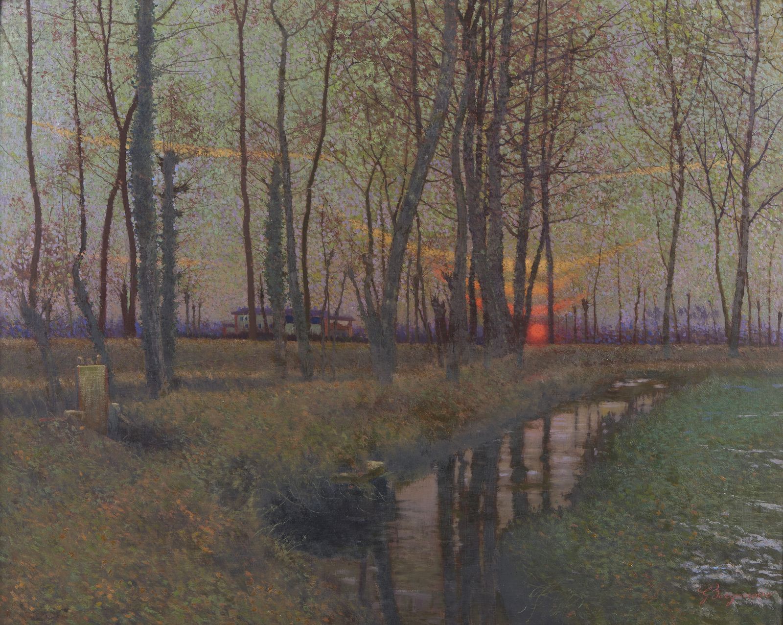 Firmato in basso a destra. Provenienza: Collezione privata, Milano.L'opera è una versione di dimensioni più ridotte del grande dipinto con il medesimo titolo con cui Borgonovo vinse il premio Principe Umberto nel 1920 e che fu successivamente acquisito dalla compagnia Edison di Milano.