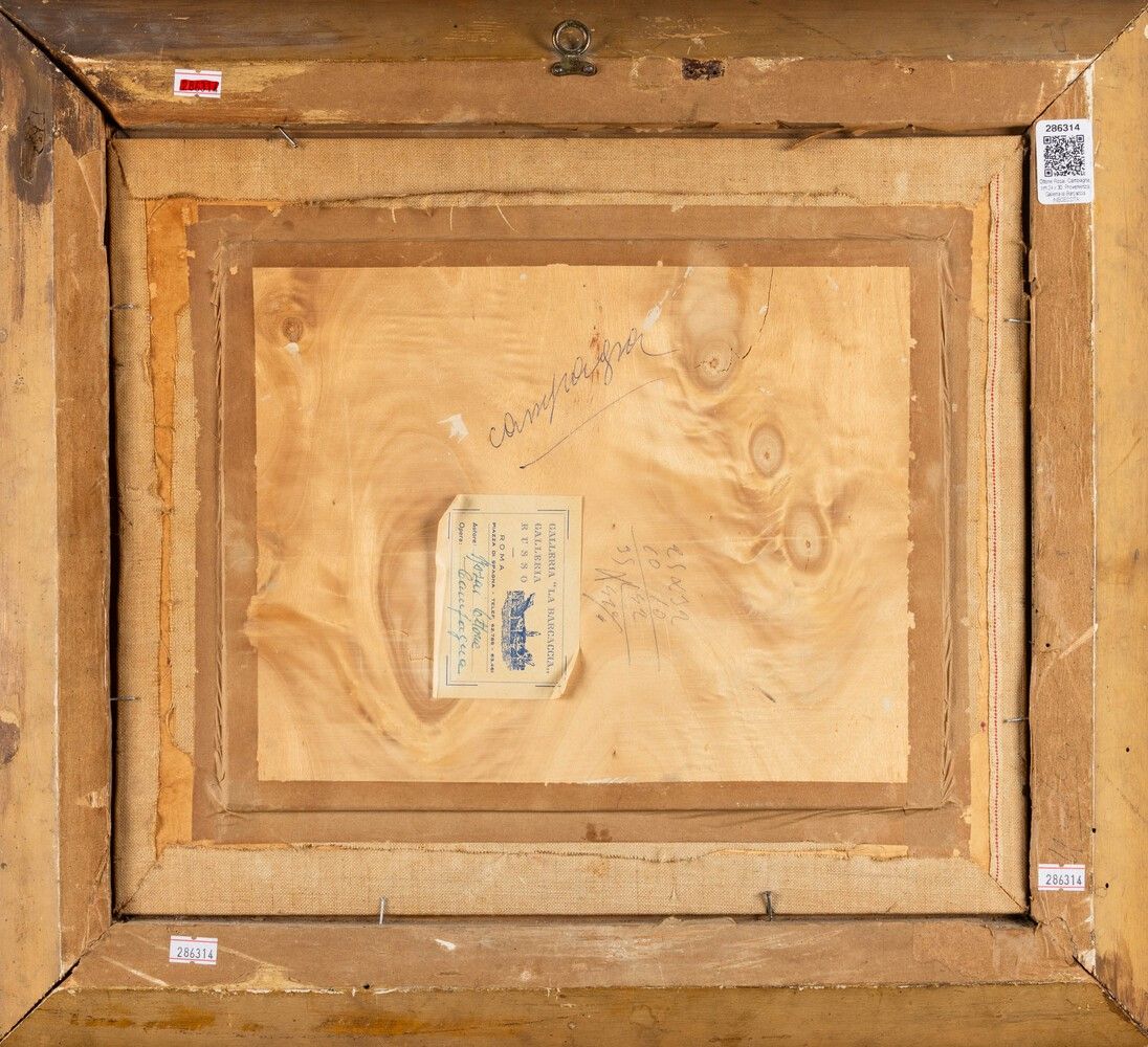 Etichetta al retro della Galleria La Barcaccia - Galleria Russo, Roma