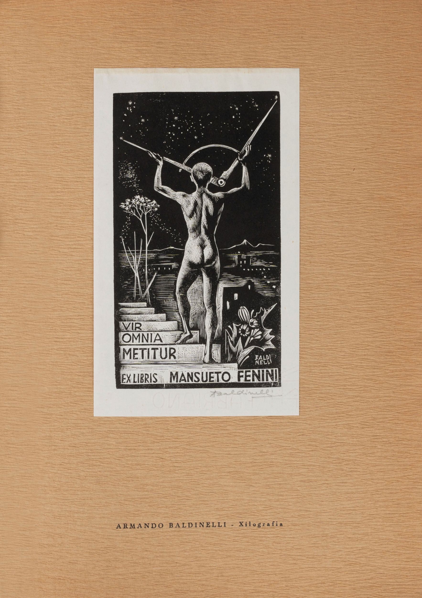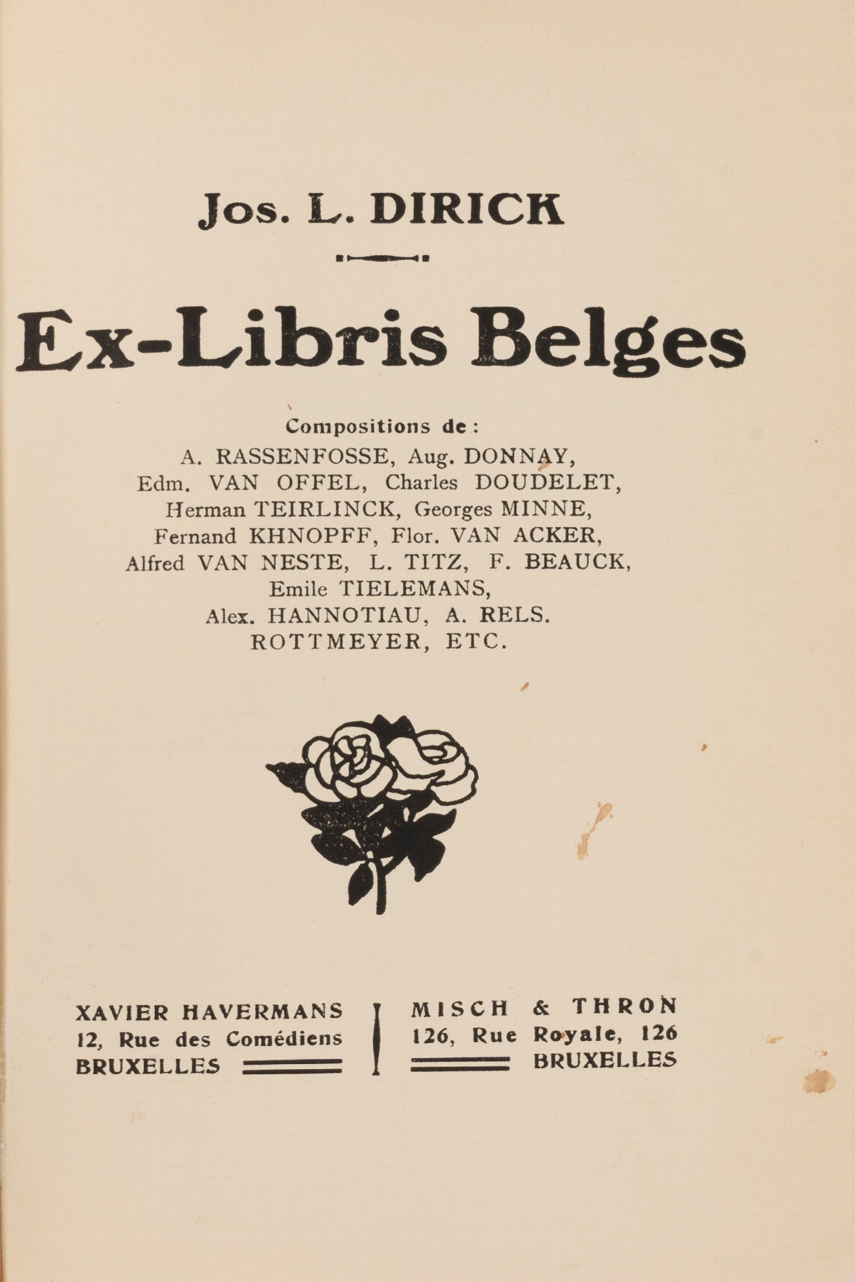 1947 Milano, Fratelli Magnani, 15 agosto 1947. In 4°. Con 45 ex libris originali, di cui alcuni a colori applicati su cartoncino, alcune illustrazioni nel testo, qualche arrossatura e fioritura marginale, brossura editoriale con titolo al piatto anteriore, legatura sciupata e con mancanze. § Insieme nel lotto Dirick, Jos. L. Ex-libris belges, Bruxelles, Xavier Havermans and Misch & Thron [1911] e Ex Libris Napoleonica, 1933. Cartella contenente un fascicolo di testo in lingua ceca e 9 (di 10) tavole in cartoncino marrone, ciascuna con un ex libris applicato.