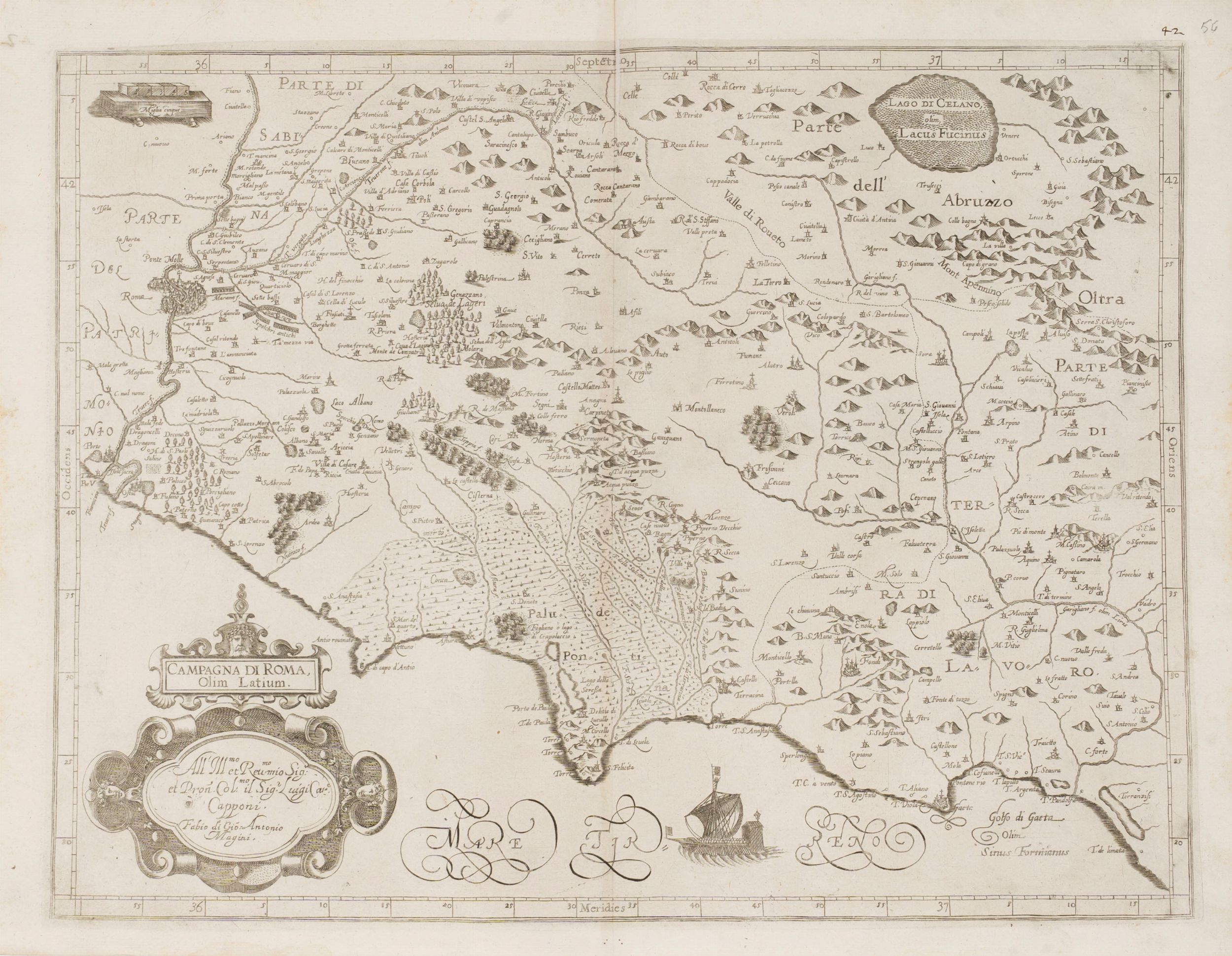 1620 Bologna, 1620. Incisione su rame tratta da Italia. Titolo racchiuso in elegante cartiglio. Misura cm. 48 x 36,8 più margine.