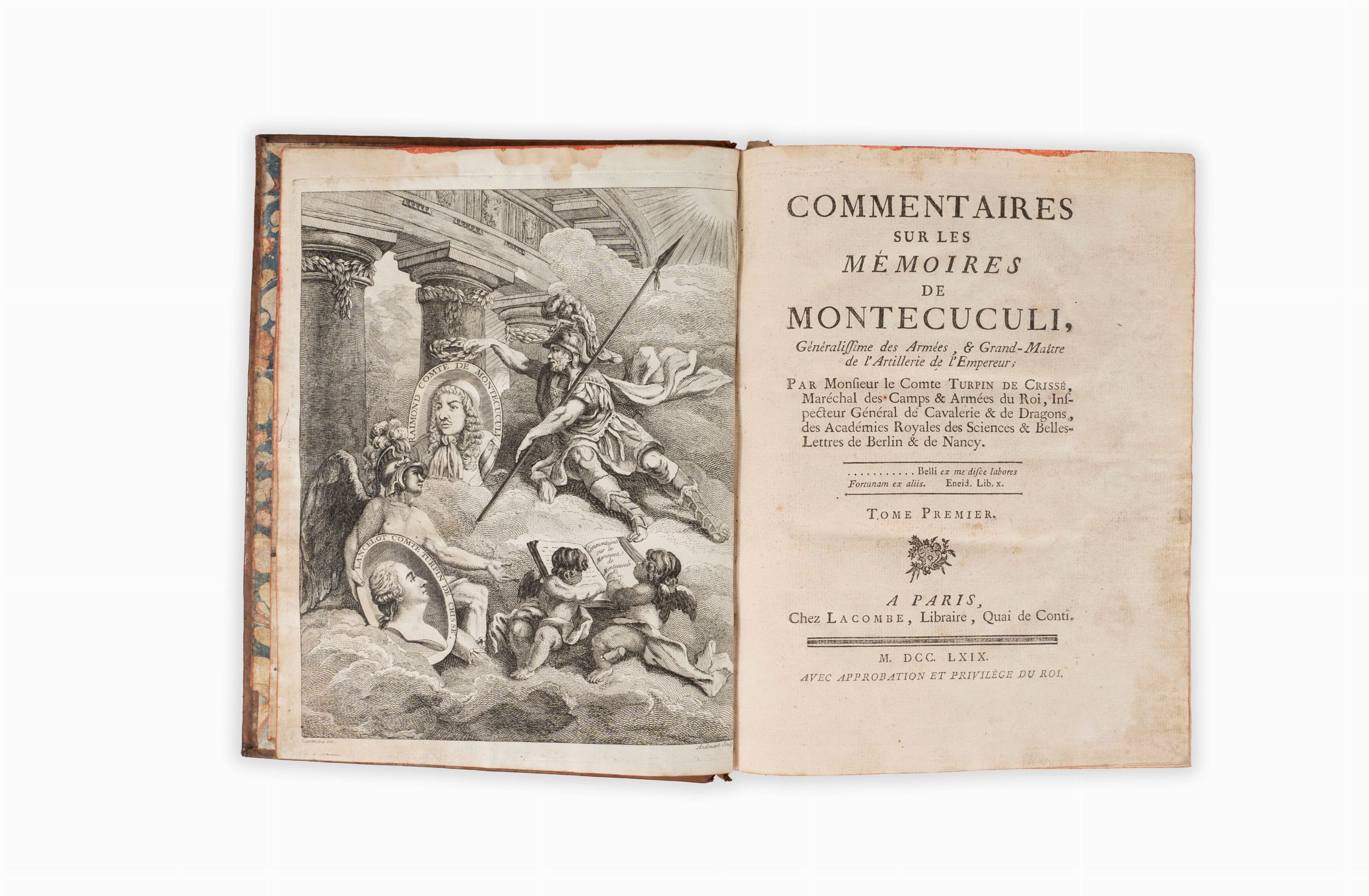 Parigi, Lacombe, 1769. In folio. Solo il primo volume. Elegante antiporta figurata e con due ritratti in ovale, con 17 tavole ripiegate, legatura cova in vitello, marrone, al dorso fregi impressi in oro, difetti. § Insieme nel lotto l'edizione di M. de Sionville. Oeuvres Militaires. Charleville, Pierre Thesin, 1756. In 16°. Solo il I tomo. Numerose tavole ripiegate all'interno, legatura coeva in vitello spugnato.