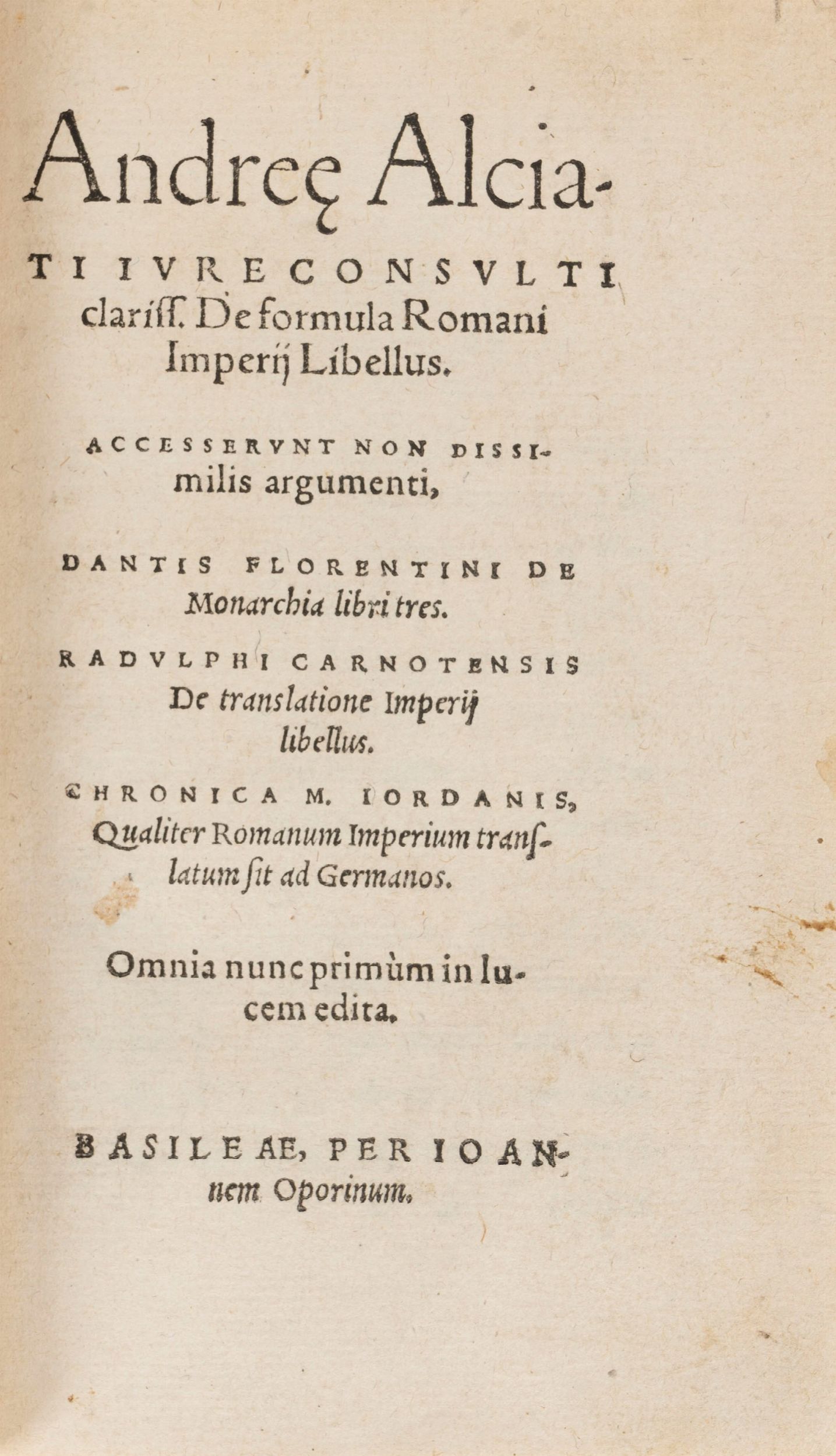 1559 Basilea, Giovanni Oporino, 1559. In 8°. Fregi tipografici, capilettera decorati, esemplare perfetto, legatura da amatore del XIX sec. in marocchino rosso con titolo in oro al dorso, unghiatura finemente decorata con cornici dorate, tagli a spruzzo dorati.