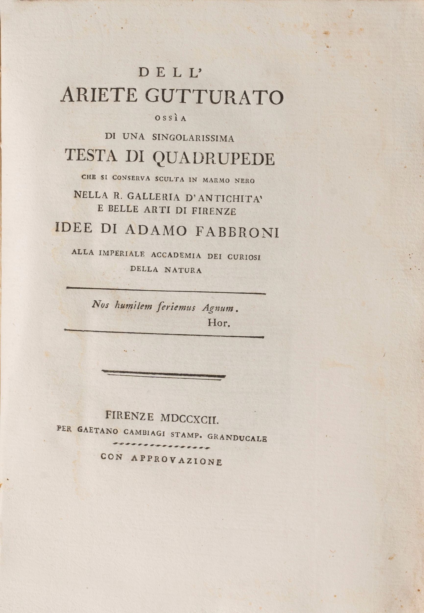 1792 Firenze, Gaetano Cambiagi, 1792. In 8°, 84pp, con 1 tavola ripiegata incisa in fine a colori, legatura coeva in cartoncino, lievi difetti.