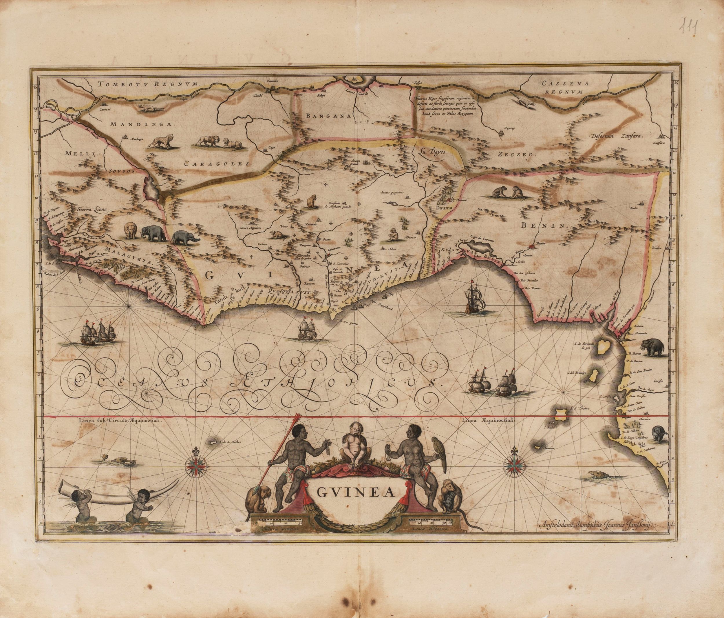 1650 Amstelodami, Sumptibus Ioannis Ianssoniis. Incisione su rame colorata all'acquerello. La carta è ornata da due artistici cartigli di cui uno contiene il titolo. Misura 52 x 38,6 più margini. Piccolo foro verso il margine inferiore.