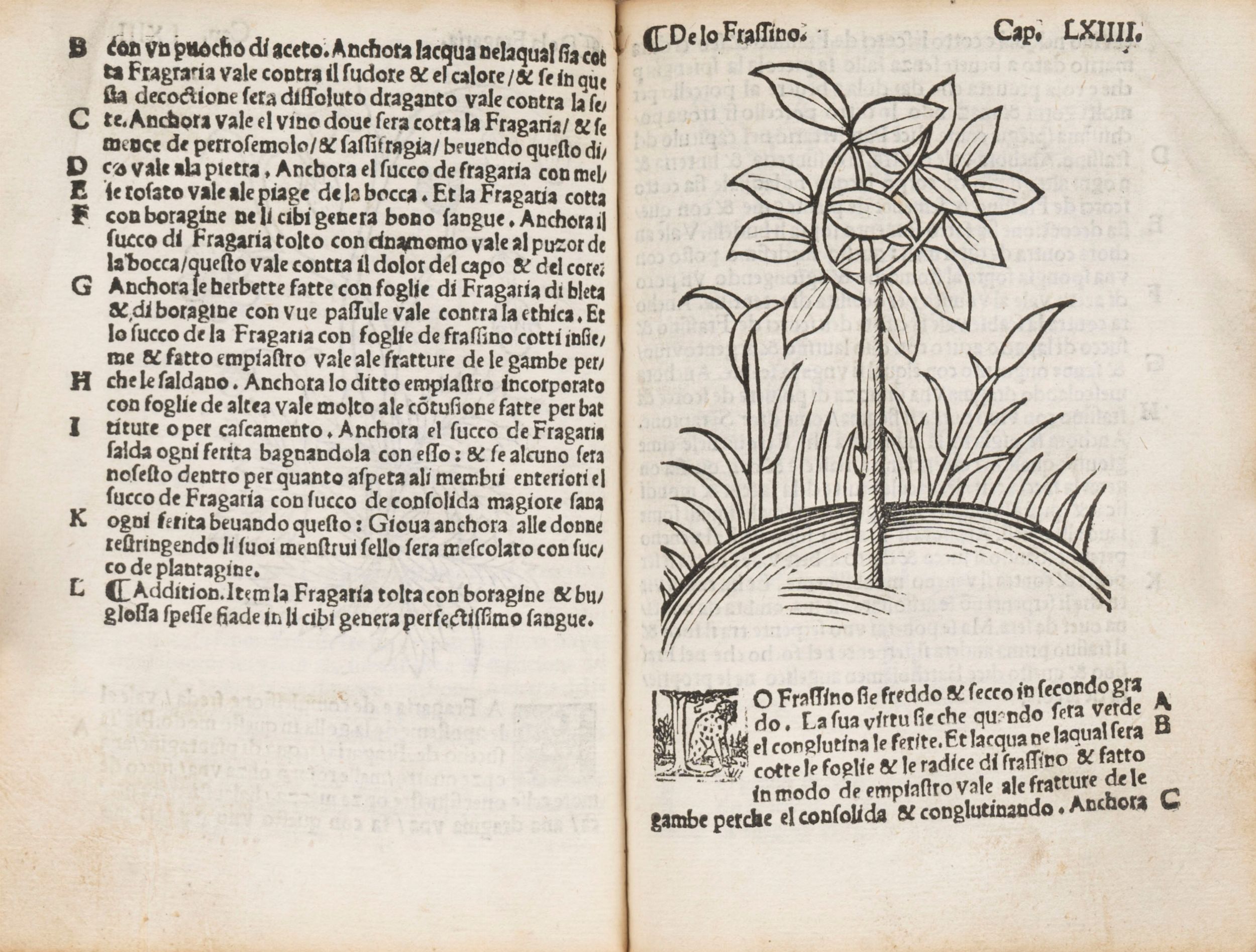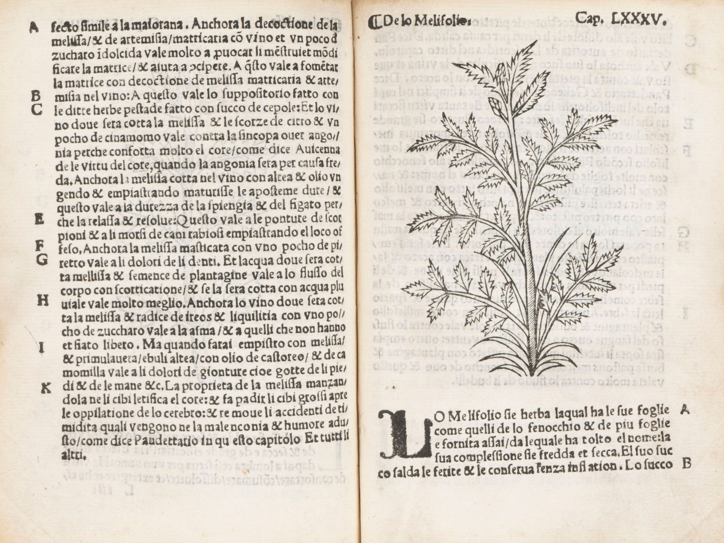 1534 Venezia, per Gioanni Andrea Vauassore detto Guadagnino & fratelli, 1534. In 8°. Al frontespizio grande xilografia raffigurante i SS. Cosma e Damiano, altra xilografia a piena pagina raffigurante la Vergine col bambino sul trono con i quattro angeli ai lati, 151 figure xilografiche a tre quarti di pagina nel testo, iniziali ornate su fondo nero, marca tipografica al recto dell'ultimo foglio, piccoli delicati restauri e segni d'uso sui margini di qualche carta, ma nel complesso esemplare conservato bene, legatura dell'inizio del sec.XVIII in pergamena dorso con titolo in oro su tassello di pelle marrone. Ex libris moderno al contropiatto.