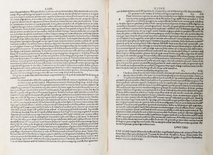 Venezia, Thomas de Blavis, de Alexandria, 3 Novembre 1491. In 2°. Testo impresso in tondo romano, spazio per capilettera con letterine guida, marca tipografica in fine volume, mancano le carte l3-4, aloni marginali di umidità. Legato con: Aulus, Persius Flaccus. Satyrae. Venezia, Peregrinus de Pasqualibus, Bononiensis and Dionysius Bertochus, 10 Settembre 1484. Aloni di umidità e forellini di tarlo, marca tipografica in fine volume. Splendida legatura coeva in assi di cipresso e pelle, con impressioni a secco, tracce di fermagli e bindelle, dorso con mancanze nello scomparto superiore.