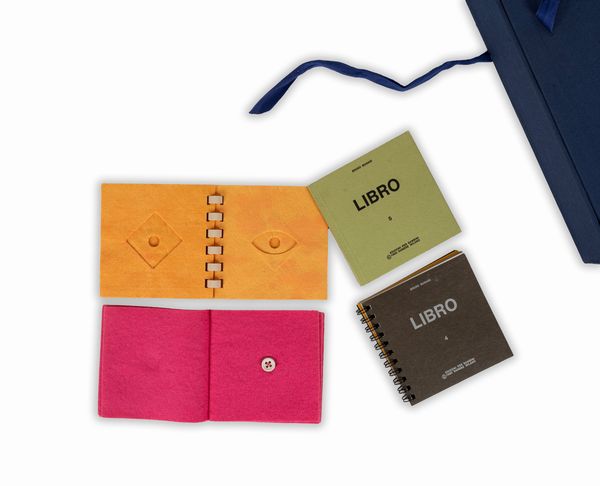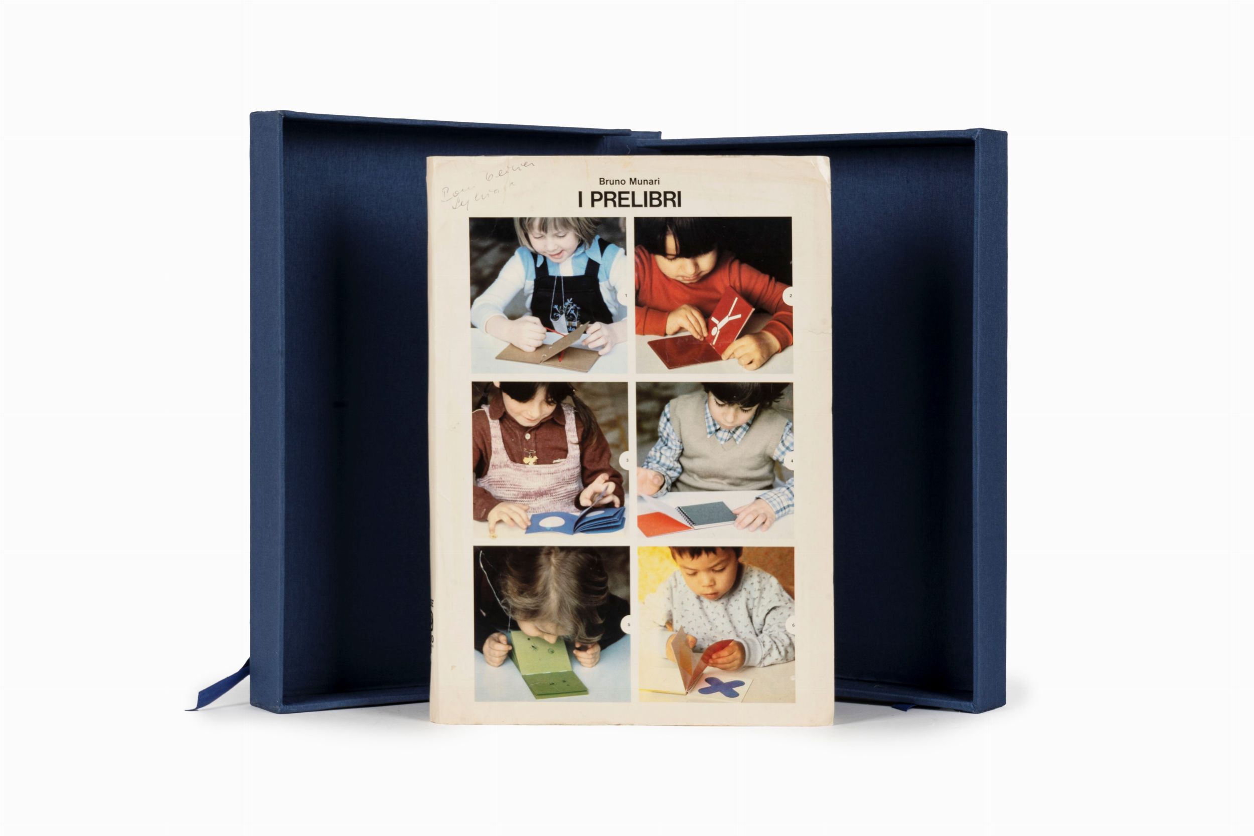 1980 Milano, Edizioni per Bambini - Danese, 1980. - Danese, 1980. Cartella editoriale con contenitori interni in plastica, custodia in cartone, 6 fotografie a colori in copertina e 6 al retro, la cartella contiene 12 libri in formato 9,7x9,7 cm. che possono essere letti anche partendo dal retro capovolto, testo di Munari in quattro lingue al risguardo, leggera piegatura alla brossura del libro 2, piccole lacune al contenitore interno in plastica, leggeri difetti alla cartella editoriale. Firma di appartenenza al piatto della cartella editoriale. Custodia in tela blu posteriore.