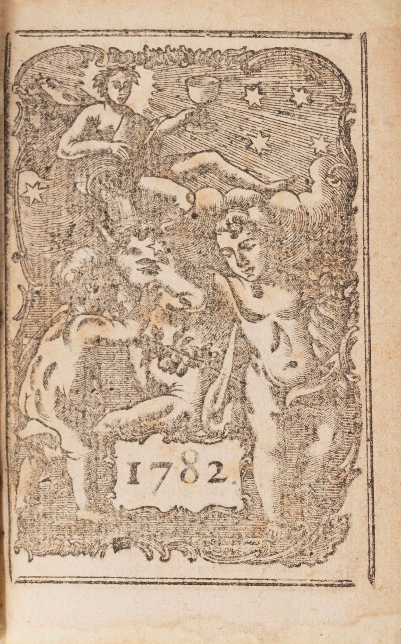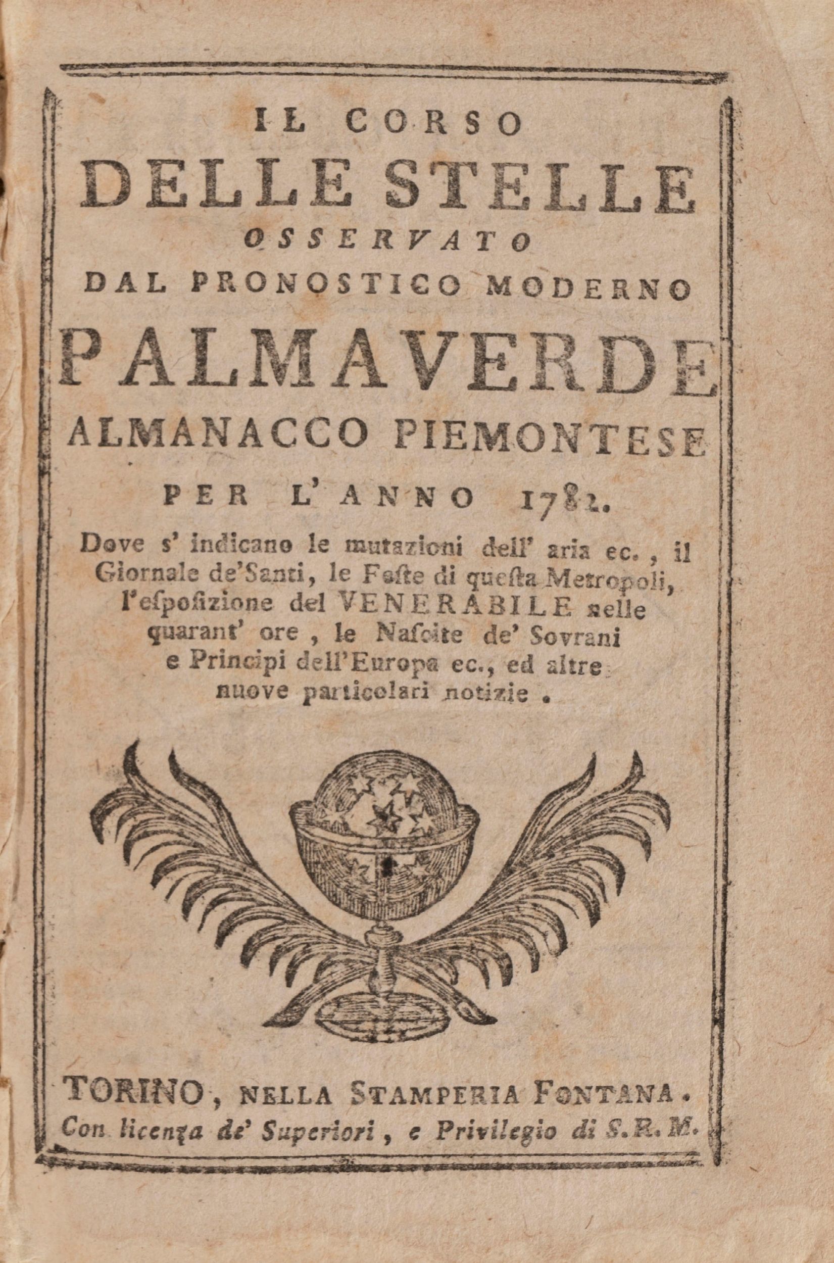 1782 Torino, Stamperia Fontana, 1782. In 16°. Fregio tipografico al frontespizio, antiporta astrologica figurata, legatura coeva in pelle di vitello con decorazioni in oro e fregi ai piatti e al dorso.
