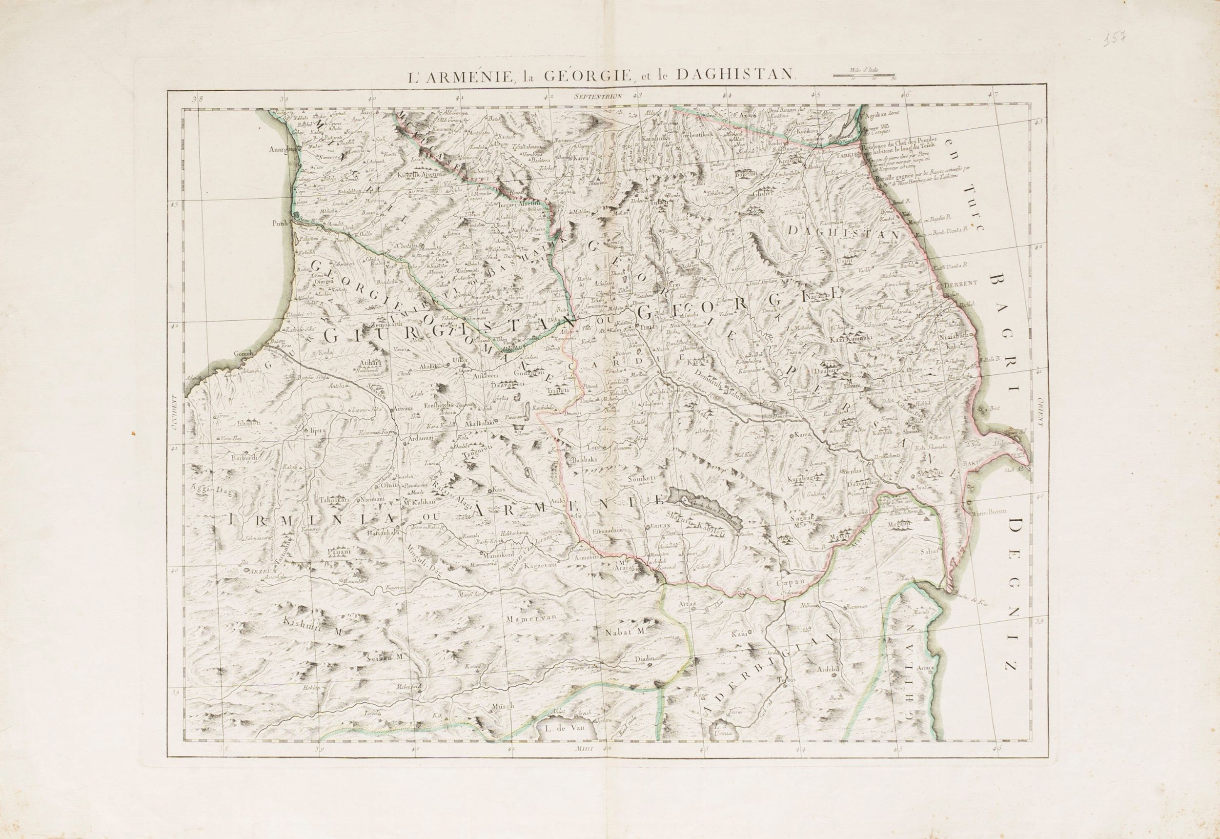 1784 Venise, chez Remondini, 1784. Incisione su rame, con coloritura coeva all'acquarello, tratta da Atlas universel dressé sur les meilleures cartes modernes, Venezia 1776-1784. Misura di cm. 68,6 x 51,5 più margine. La carta è ornata da un artistico cartiglio. Fioriture sparse.