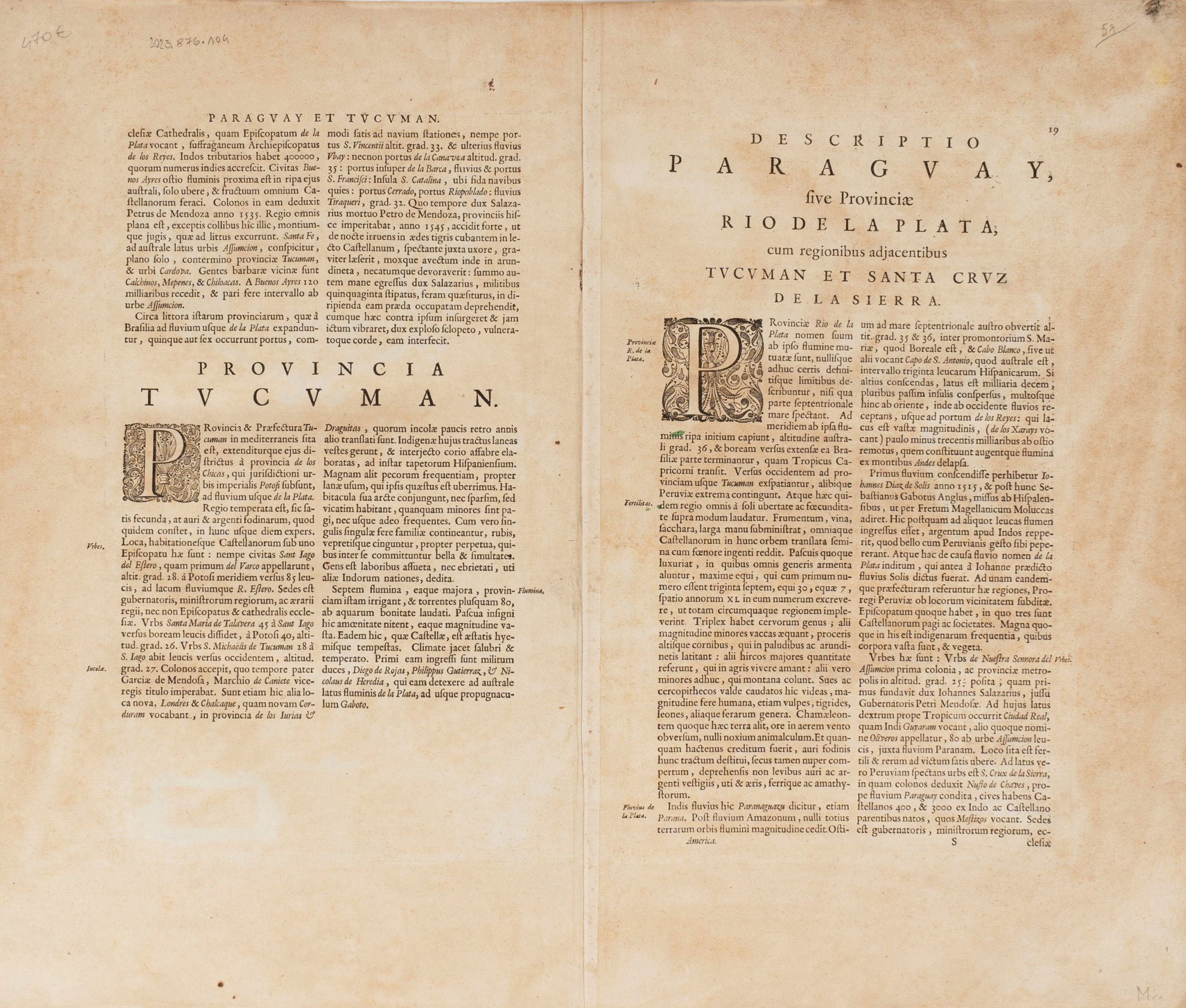 Paraguay ó Prov. de Rio de la Plata cum regionibus adiacentibus Tucuman et Sta. [..]