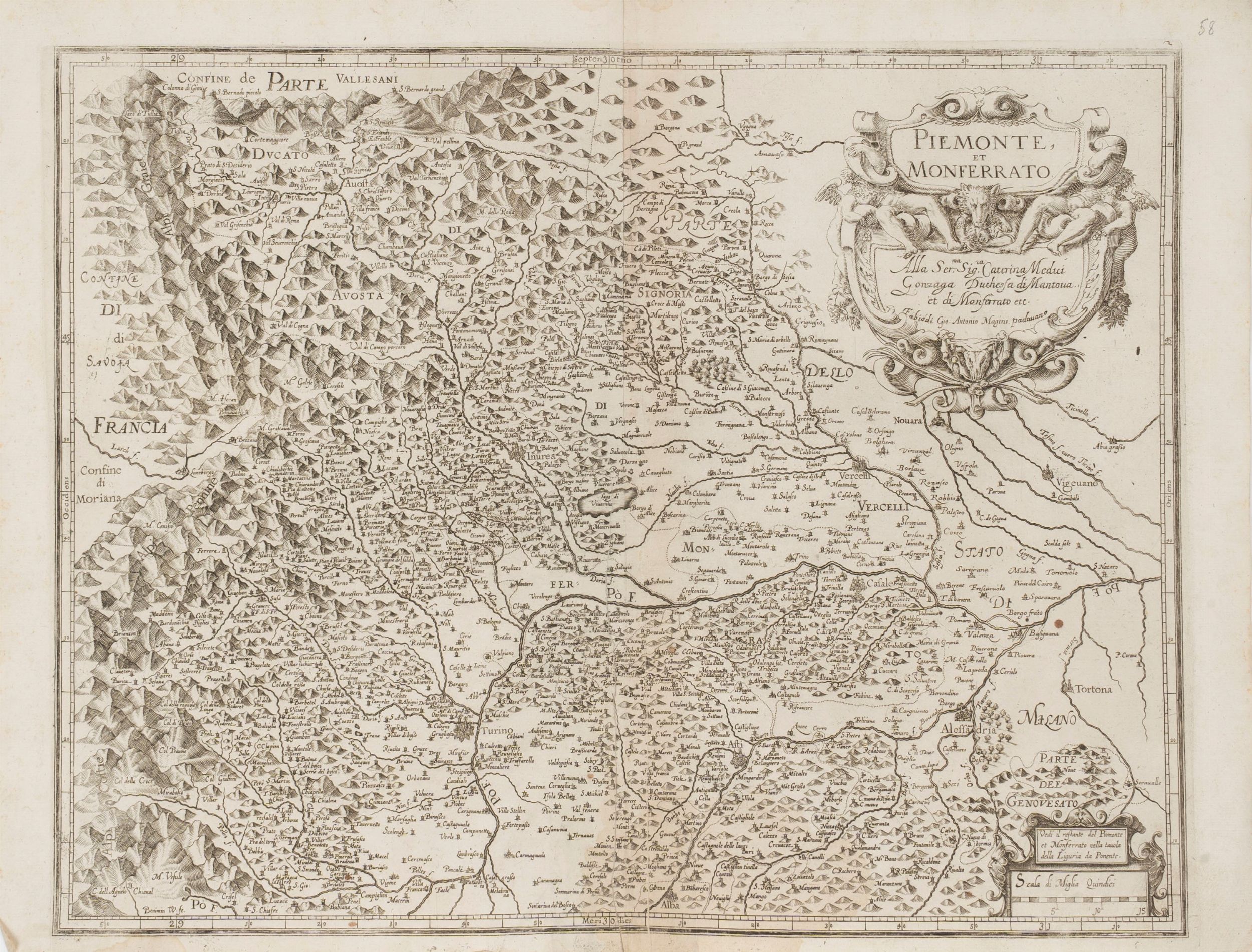 1620 Bologna, 1620. Incisione su rame tratta da Italia. Titolo racchiuso in elegante cartiglio. Misura cm. 46,7 x 34,6 più margine.