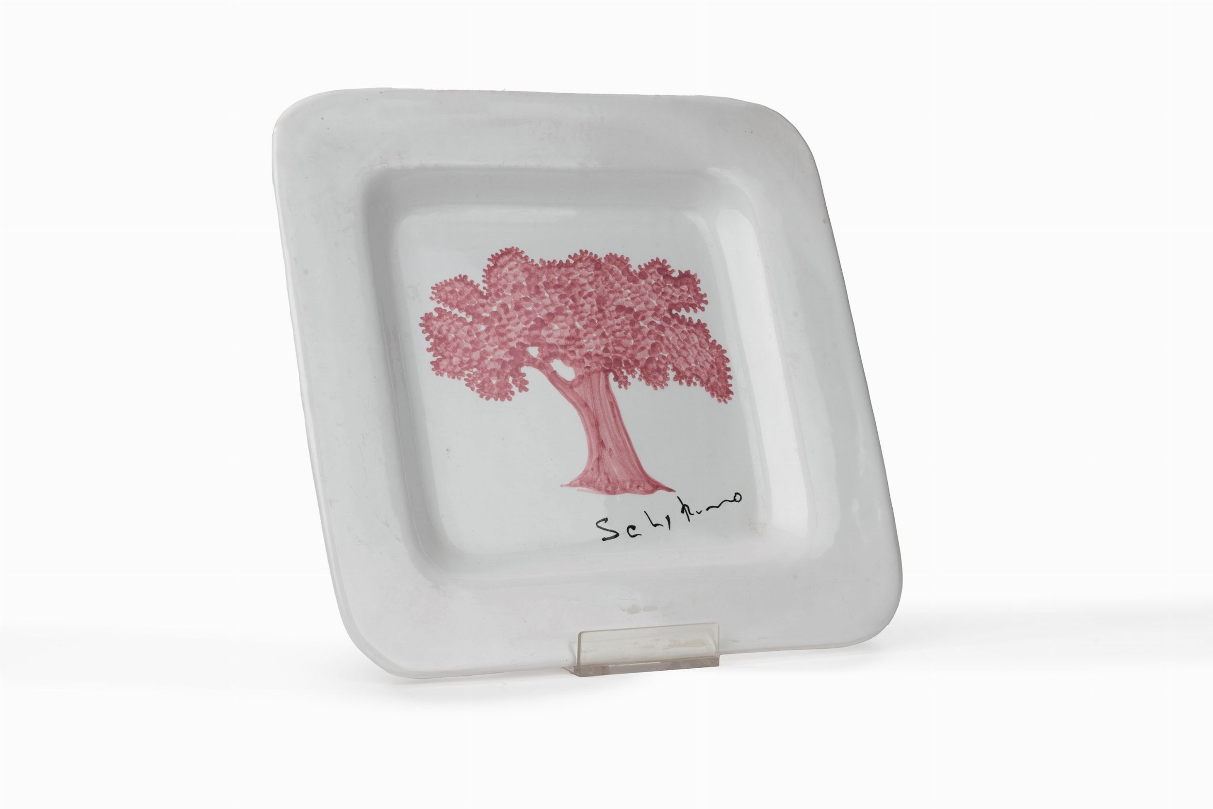 piatto in ceramica smaltata in policromia, es. 219/250, cm 32,5 x 32,3 x 4
