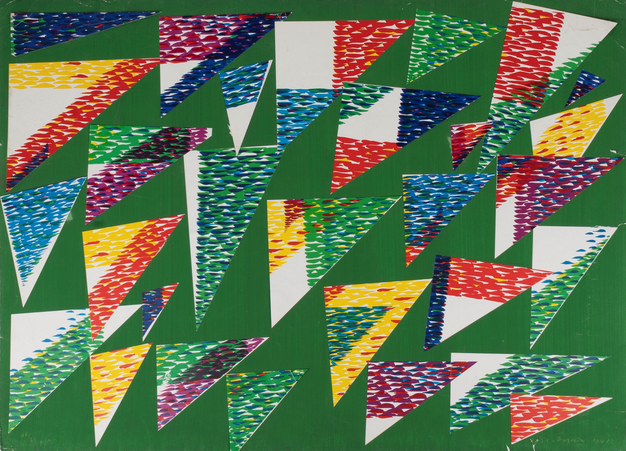serigrafia e collage, es. 18/25 P.A., cm 75,5 x 104,5 (misure del foglio), (sc)