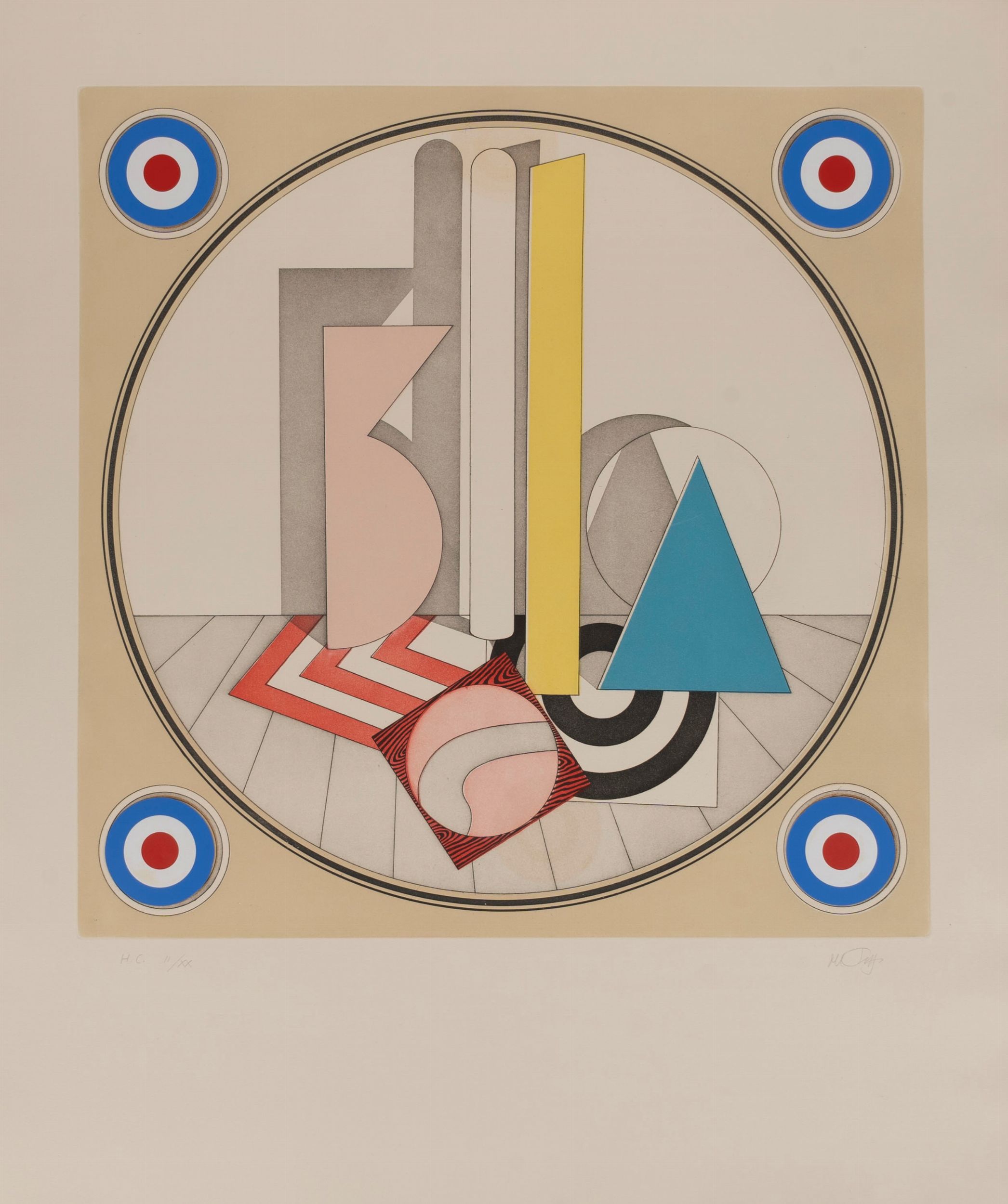 acquaforte acquatinta e collage a colori, es. H.C. II/XX, cm 55 x 55 (cm 79 x 67,5 misure del foglio), (sc)