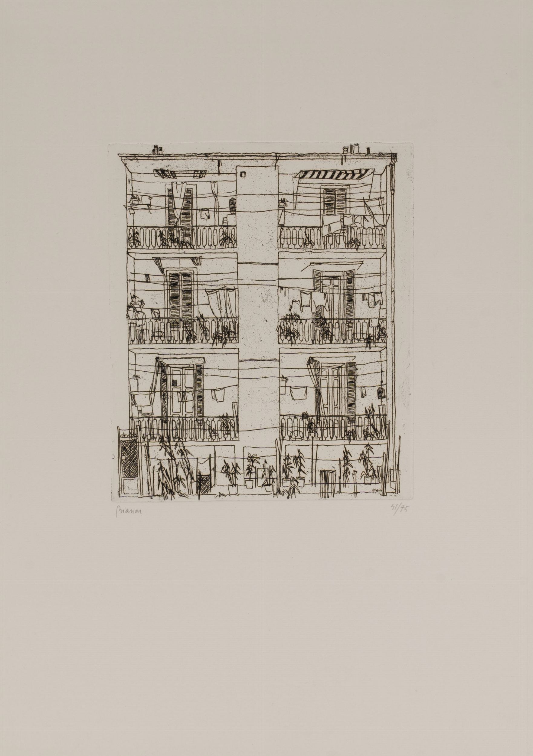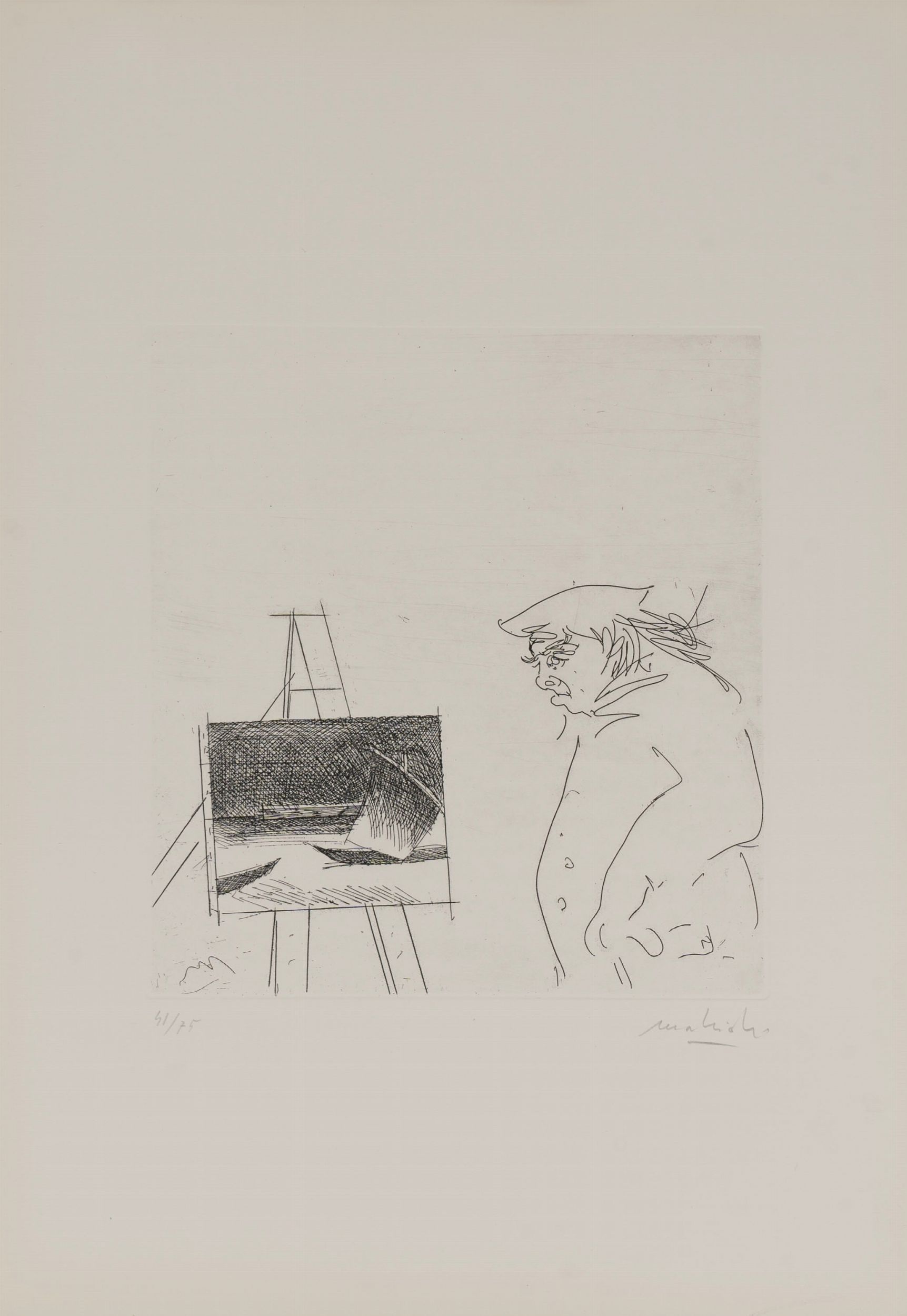 Cartella con 3 incisioni all'acquaforte di Renzo Biason, Carlo Mattioli, Enrico Paulucci, ess. 41/75