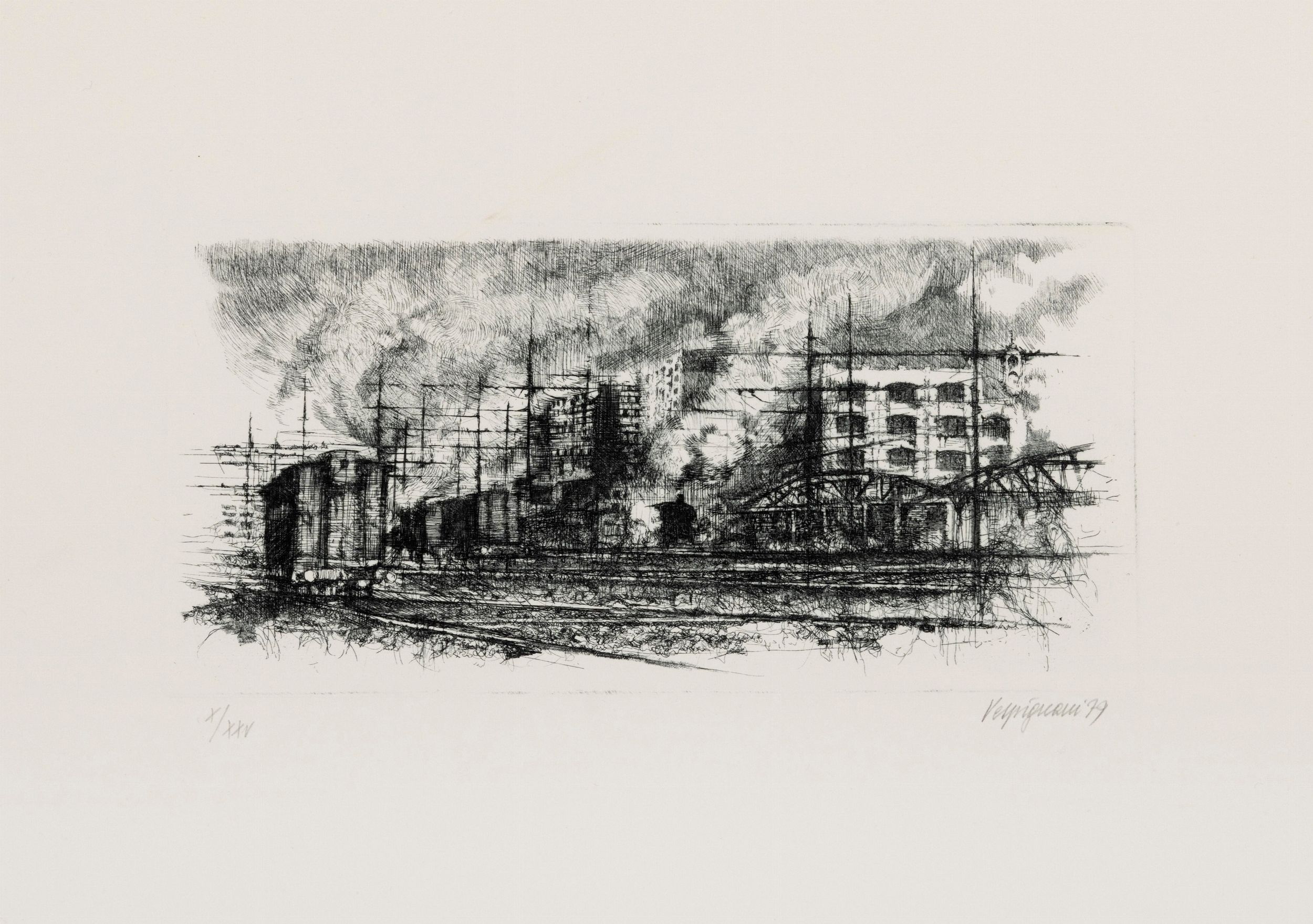 2 incisioni all'acquaforte acquatinta, ess. X/XXV e XVII/XXV, cm 11,6 x 24,4 (cm 35 x 50 misure del foglio), (sc)