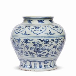 VASO, CINA, DINASTIA MING, SEC. XVI-XVII in porcellana bianco blu con decoro fiore di loto e rami floreale giranti. [..]