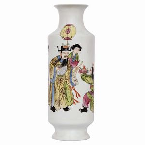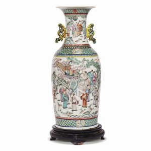 VASO, CINA, DINASTIA QING, SEC.XIX in porcellana Canton dipinto con personaggi e una divinità femminile [..]