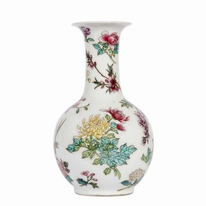 VASO, CINA, SEC. XX-XXI in porcellana bianca è abbellito da decori floreali e farfalle. Alt. cm 23 中国 [..]