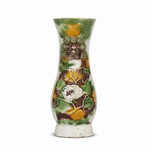 VASO DA MURO, CINA, DINASTIA QING, SEC.XVIII da muro in porcellana biscuit Sancai, con decorazione di rami floreali [..]