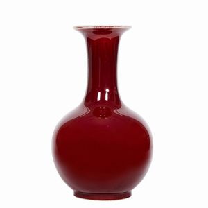 VASO, CINA, SEC. XX in porcellana sangue di bue. Alt. cm 34 中国 二十世纪 [..]