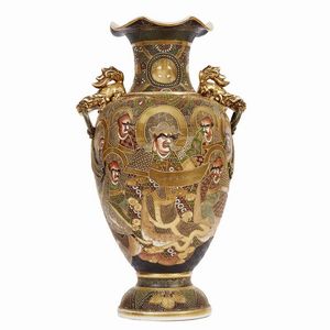 VASO, GIAPPONE, SEC. XIX in ceramica Satzuma-yaki, raffigurante saggi e Amaterasu-ōkami in centro. Alt.cm [..]