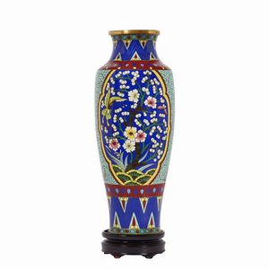 VASO, GIAPPONE, PERIODO MEIJI, SEC. XIX-XX in Shippoyaki con tre sfondi di colore blu, verde acqua e rosso sui [..]