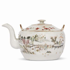 TEIERA, CINA, DINASTIA QING, SEC. XIX-XX in porcellana policroma dipinta con paesaggio. Alt. cm 9 清 十九至二十世纪 [..]
