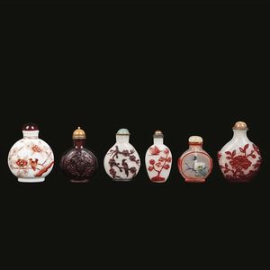 GRUPPO DI SEI SNUFF BOTTLES, CINA, DINASTIA QING, SEC.XIX-XX