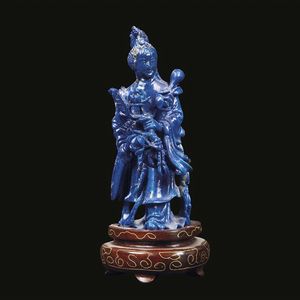 INTAGLIO, CINA, SEC.XX in lapislazzulo raffigurante divinità femminile con fiori. Alt.cm 9,5 中国 [..]