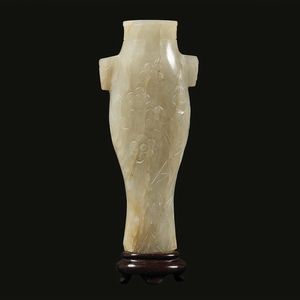 INTAGLIO, CINA, DINASTIA QING, SEC. XIX in giada bianca grigia di forma di vaso intagliato con rami di fiori, [..]