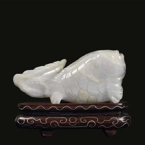 INTAGLIO, CINA, DINASTIA QING, SEC. XIX in giada bianca intagliata a forma di pesce. Lungh. cm 6,8 清 十九世纪 [..]