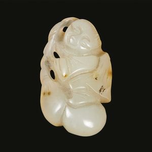 INTAGLIO, CINA, DINASTIA QING, SEC.XIX in giada bianca raffigurante bambino con doppia zucca. Alt.cm 5,5 清 [..]