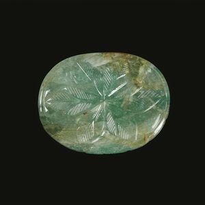 INTAGLIO, CINA, DINASTIA QING, SEC.XIX in giadeite decorato con fiore e fogli. Lungh.cm 4 清 十九世纪 [..]