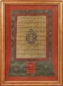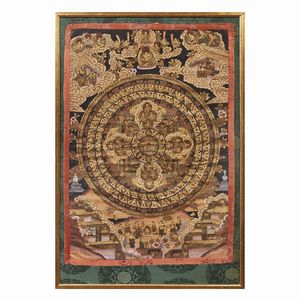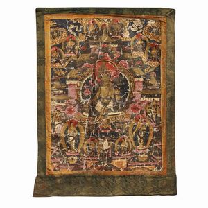 THANGKA, TIBET, SEC. XIX su tessuto raffigurante Buddh. Dim.cm 64 x 49 藏 十九世纪 [..]