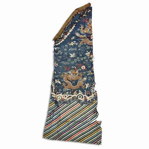 FRAMMENTO, CINA, DINASTIA QING, SEC. XIX di seta Kesi con drago ed onde. Lungh. cm 128,5 清 十九世纪 [..]