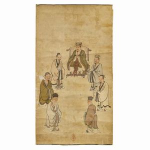 DIPINTO, CINA, DINASTIA QING, SEC. XIX-XX su seta raffigurante i sette saggi anziani. Dim. cm 66,5x36 中国 [..]