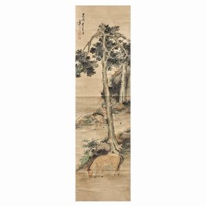 DIPINTO, CINA, PERIODO DELLA REPUBBLICA (1912-1949) su carta con soggetto montano.Il dipinto reca Xiaomeng la [..]