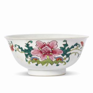 CIOTOLA, CINA, DINASTIA QING, SEC. XIX in porcellana policroma decorata con fiori. Diam. cm 18,4 清 十九世纪 [..]