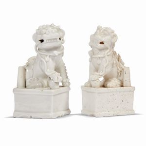 DUE CANI DI PHO, CINA, DINASTIA QING, SEC.XVIII in porcellana bianca Dehua su base. Alt.cm 13,3 清 十八世纪 [..]