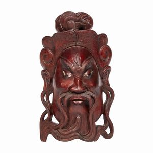 MASCHERA, CINA, PERIODO DELLA REPUBBLICA (1912-1949) in legno raffigurante viso di Guanyu. Alt.cm 40 民国 [..]