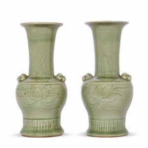 COPPIA DI VASI, CINA, DINASTIA QING, SEC. XX in porcellana Celadon a forma di Yanyan Gu, impegnati in superbi [..]