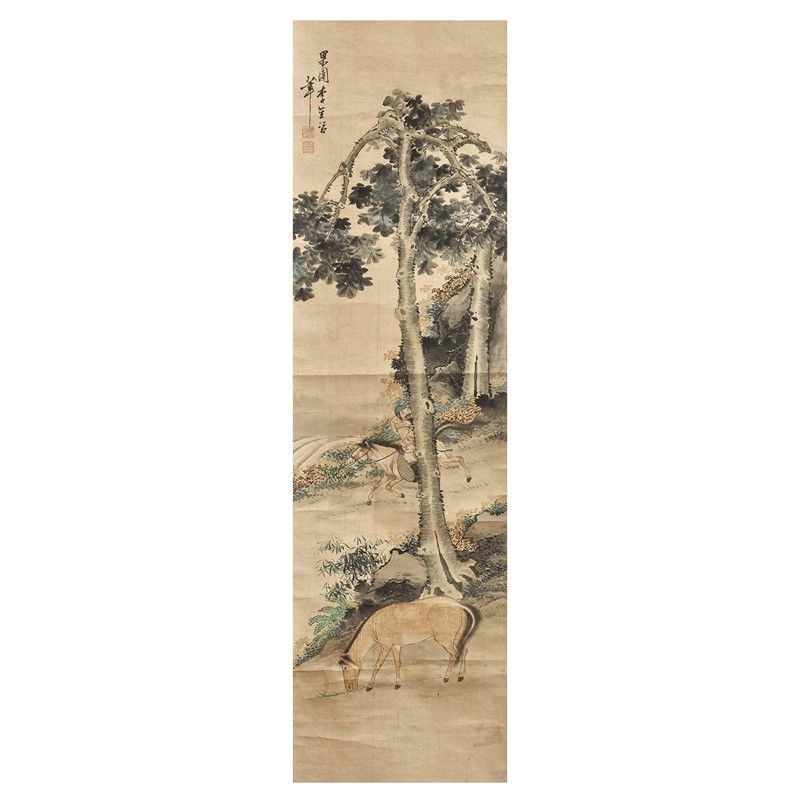 中国 二十世纪 人物骏马图一组两件 尺幅118x32,6厘米