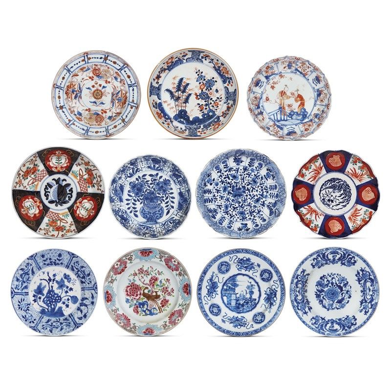GRUPPO DI UNDICI PIATTI, CINA E GIAPPONE, SEC.XVIII-XIX