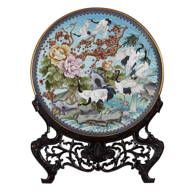 民国时期 1912至1949 景泰蓝鹤图盘 直径 64,5厘米