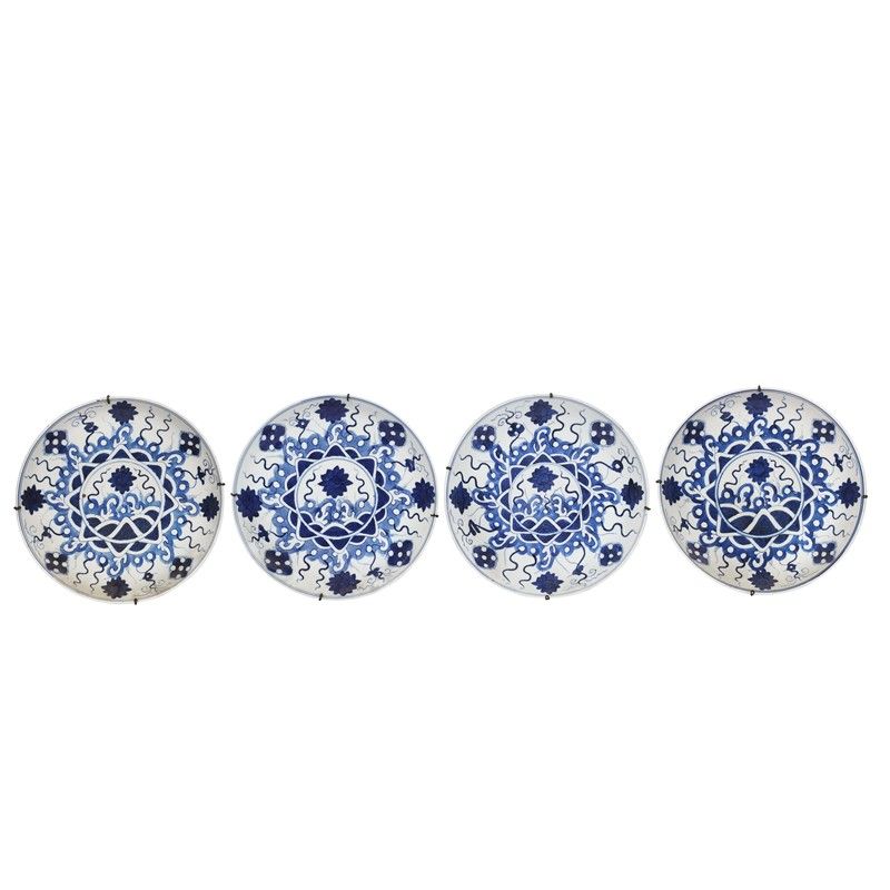 清 十九至二十世纪 青花外销花纹盘 一组四件 花押款 直径 23厘米