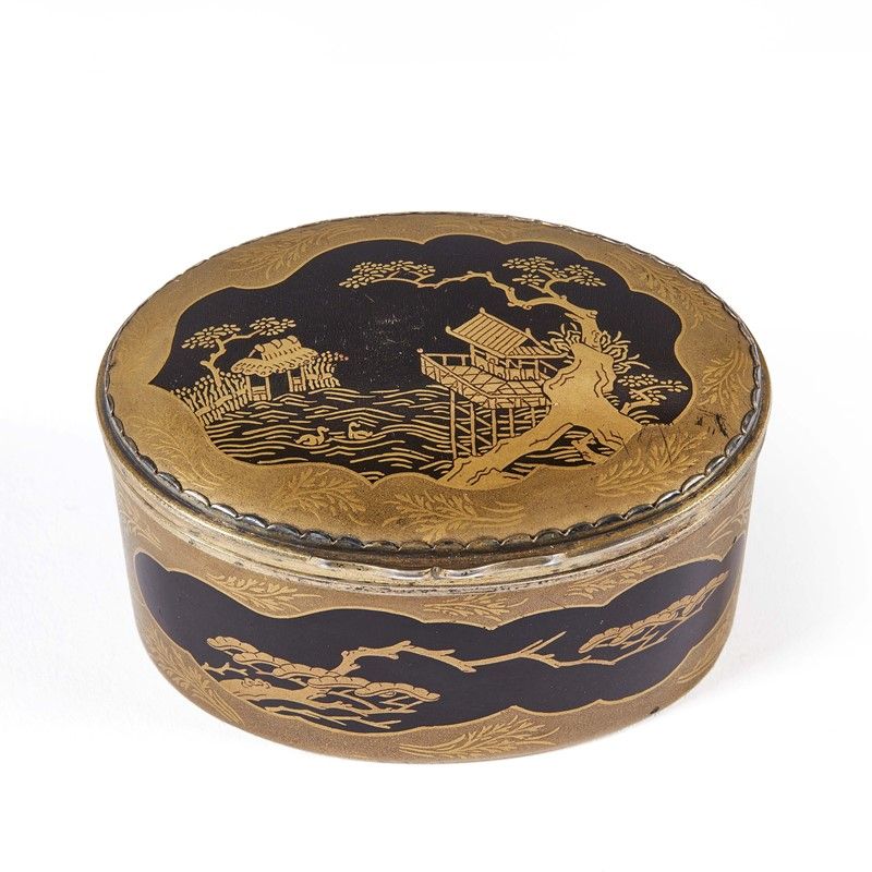 日本 十九至二十世纪 漆画铜盒 高 3,8 厘米 长 7厘米 宽 5,3厘米