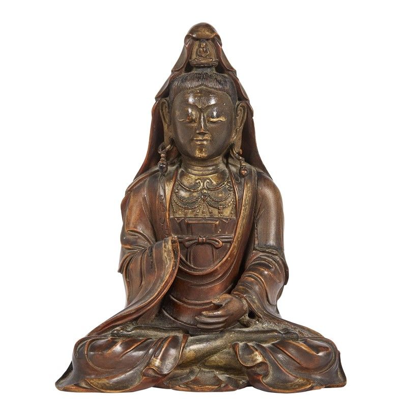 清 十九世纪 木雕观音坐像 高20,5厘米