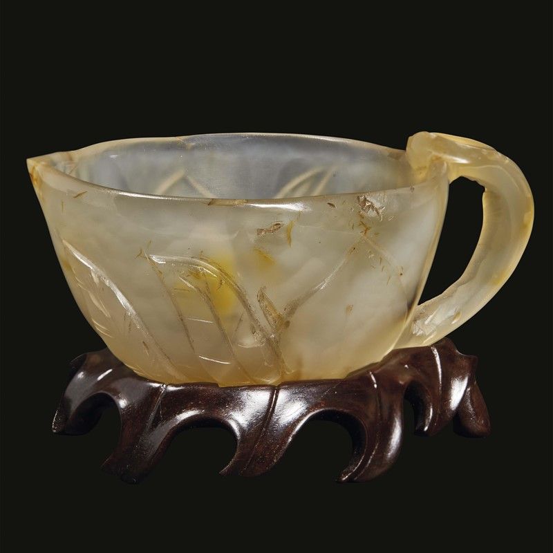 清 十九世纪 玛瑙折枝桃杯 高 3,5厘米 长 8,5厘米